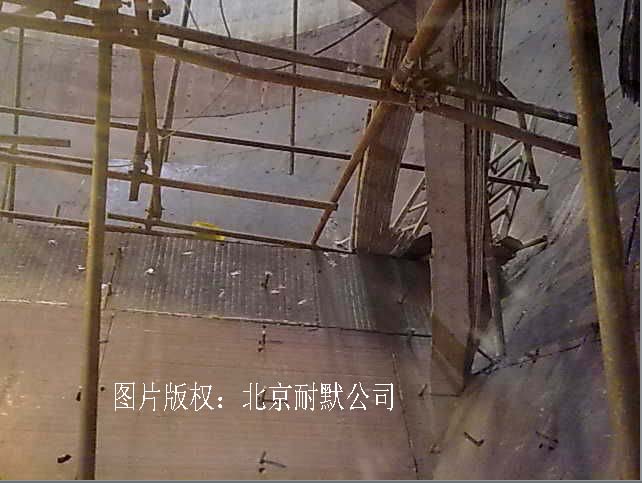 圖(4)6+4碳化鉻耐磨鋼板在內蒙古薛家灣煤礦施工現場,預計使用壽命10年以上,總面積4000平米